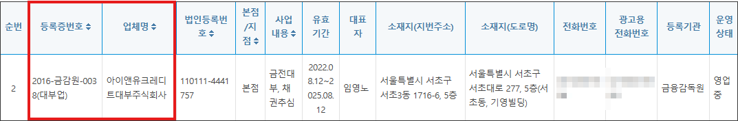 아이앤유대부의 본 업체명은 ‘아이앤유크레디트대부’입니다. 협회에 정식 등록되어 있는 업체로 안전하게 이용할 수 있습니다.
