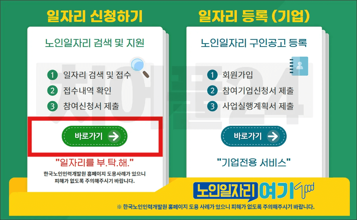 🔹온라인 : ‘노인일자리 여기’ 홈페이지 이용