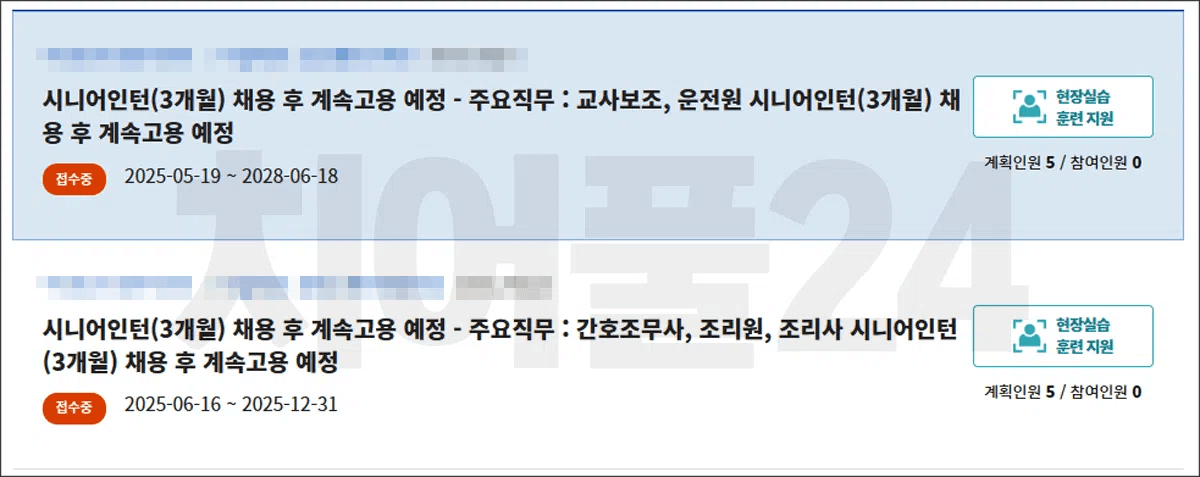 🔹시니어인턴십 : 기업에서 일정 기간 근무하며 직무교육, 정규직 전환 가능