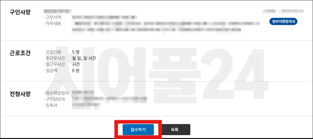 ④ ‘접수하기 ▷ 개인정보 입력’ 하면 신청 완료